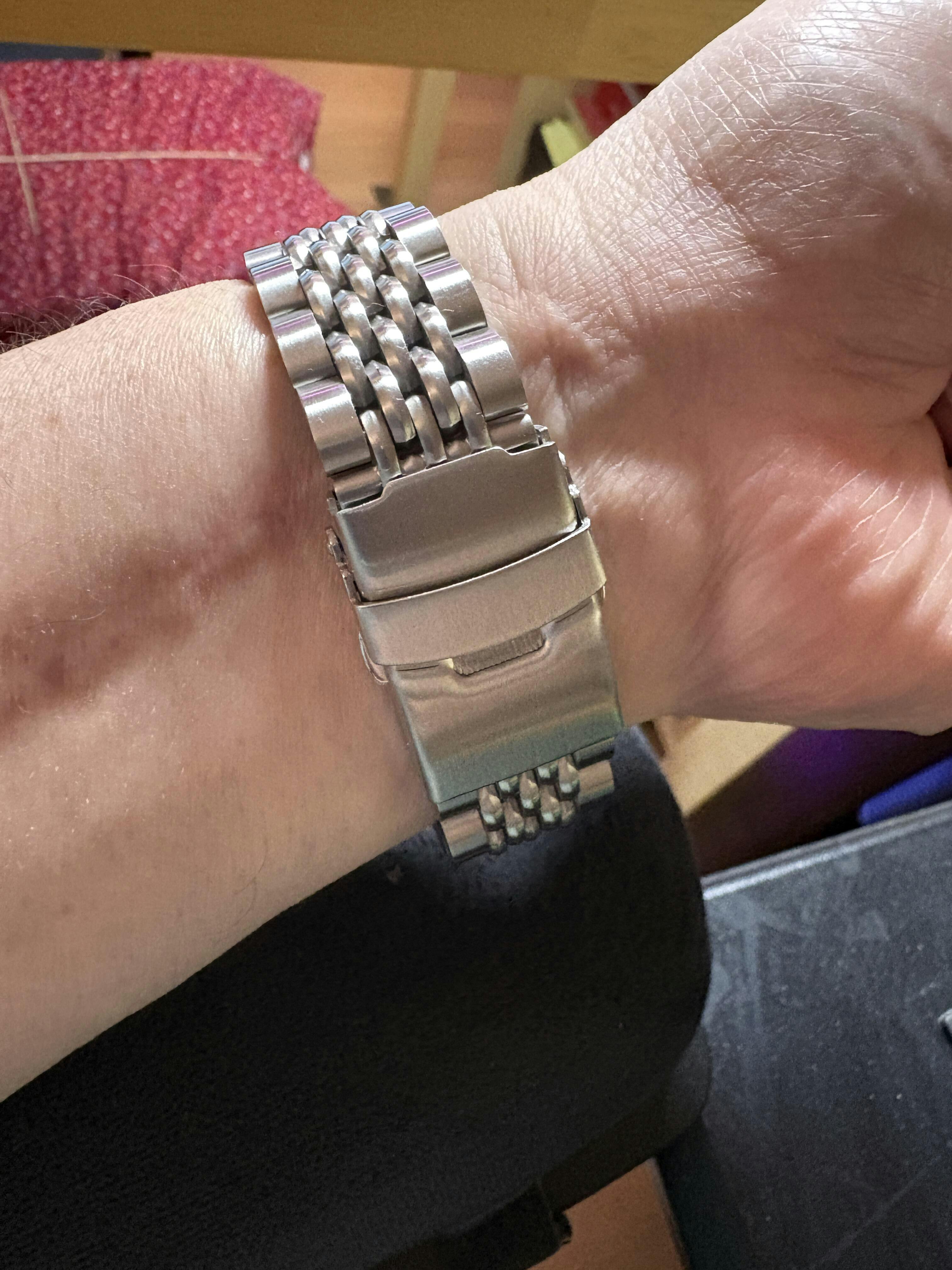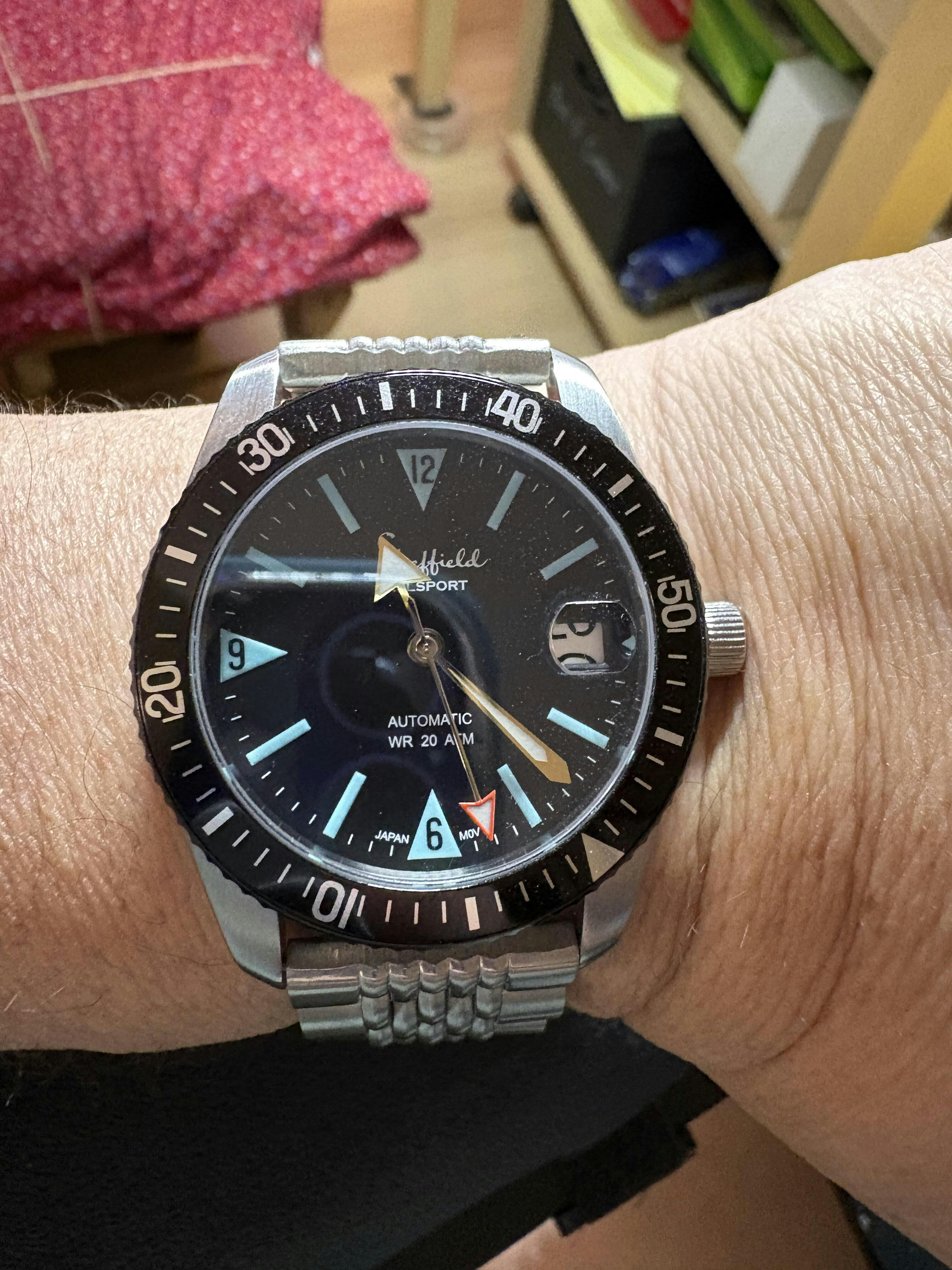 In the 60s, dive watches were often in the 36-38mm range. To honor this, I designed a case matching the 36mm Sheffield Divers' proportions, without a crown guard and with appropriately scaled lugs. The Seiko NH35 movement keeps the thickness slightly less than the 1A 40mm, ensuring it fits well under a cuffed shirt.