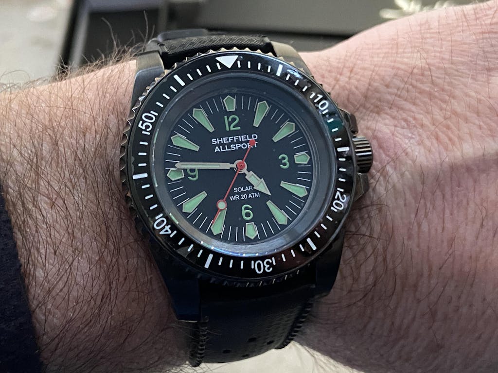 The Solar Black is a small run of 45 units designed after the 1A Black Automatic with its classic Mint Green Swiss Lume markers and hands. 20 ATM water resistance, 40mm PVD Black 316L Steel case with engraved back, Japan Lume on Bezel and anti-glare coated sapphire crystal with the classic tropic FKM strap. As the name implies the watch is powered by the sturdy and reliable Miyota 2070 Solar quartz movement used in the Sheffield GT model range.