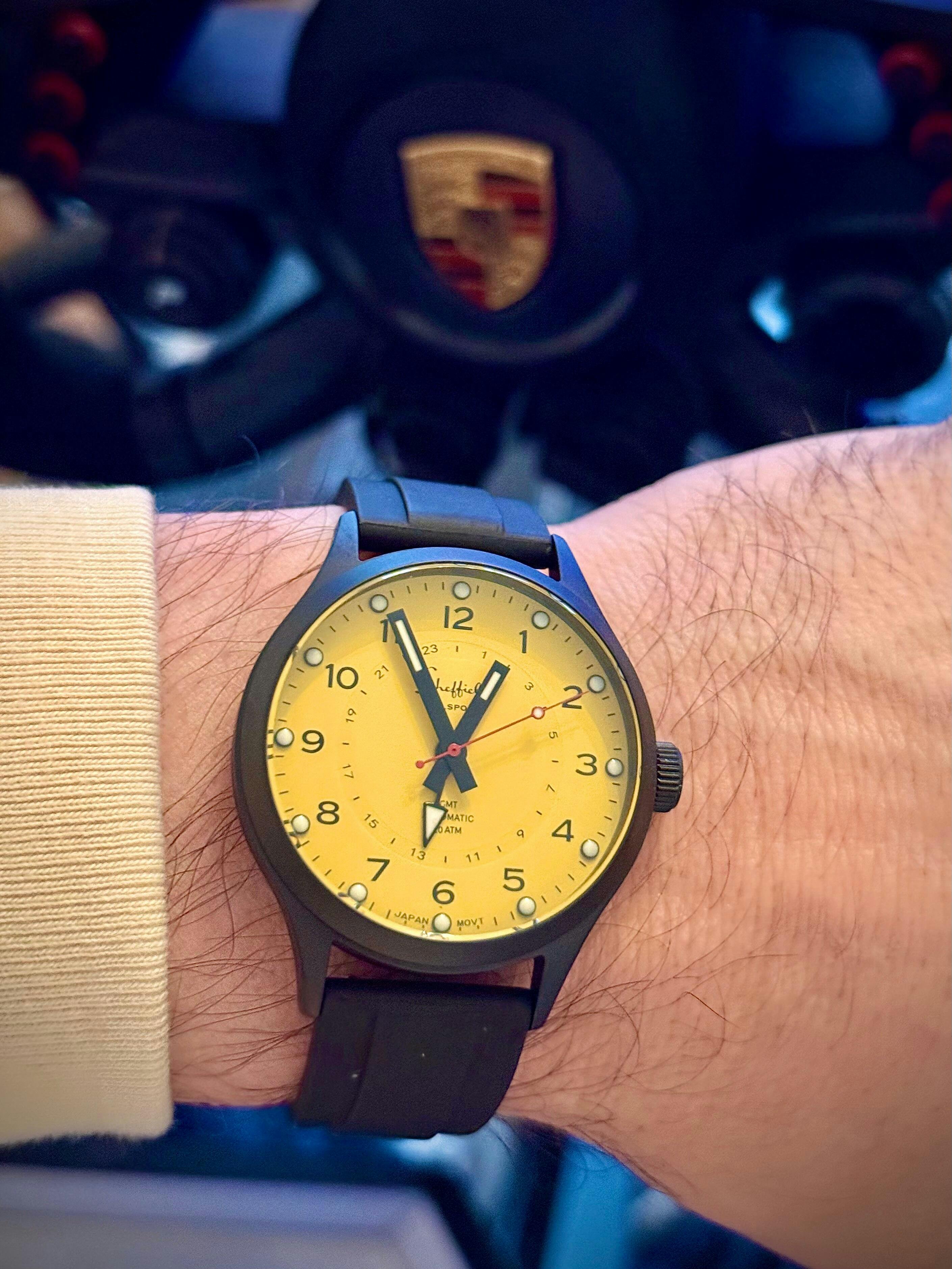 The VisiLume GMT is a sturdy and bright GMT with a wide dial in a 41mm case. A number of you asked for a model like this so we obliged. Powered by the solid Seiko NH35 movement and encased in a black DLC/PVD case it definitely stands out and reads easily day or night.